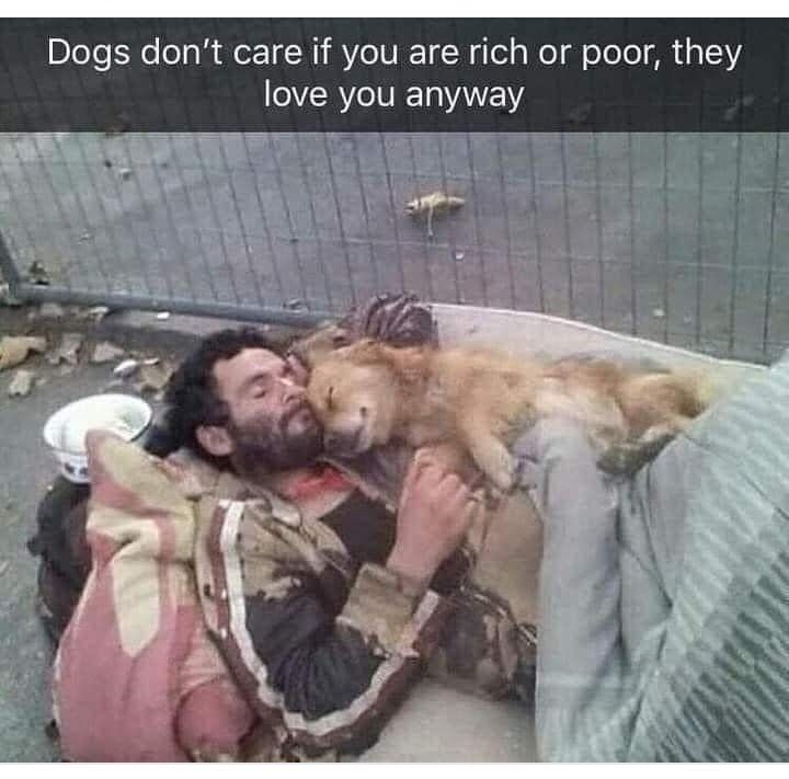 Dogs don’t care if you are rich or poor, they love you anyway. 🕊️