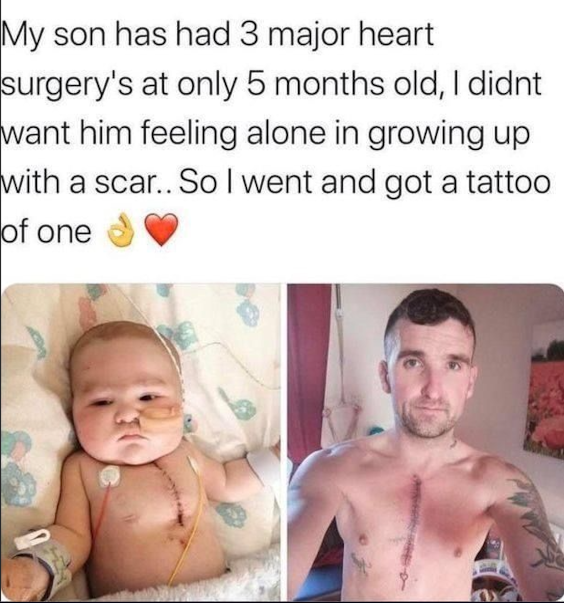 Not wanting his son to ever feel different or alone, this dad made a profound promise. He chose to carry the same mark, tattooing his chest with an identical scar. It’s more than ink—it’s a lifelong declaration: You will never carry this alone. 🤝