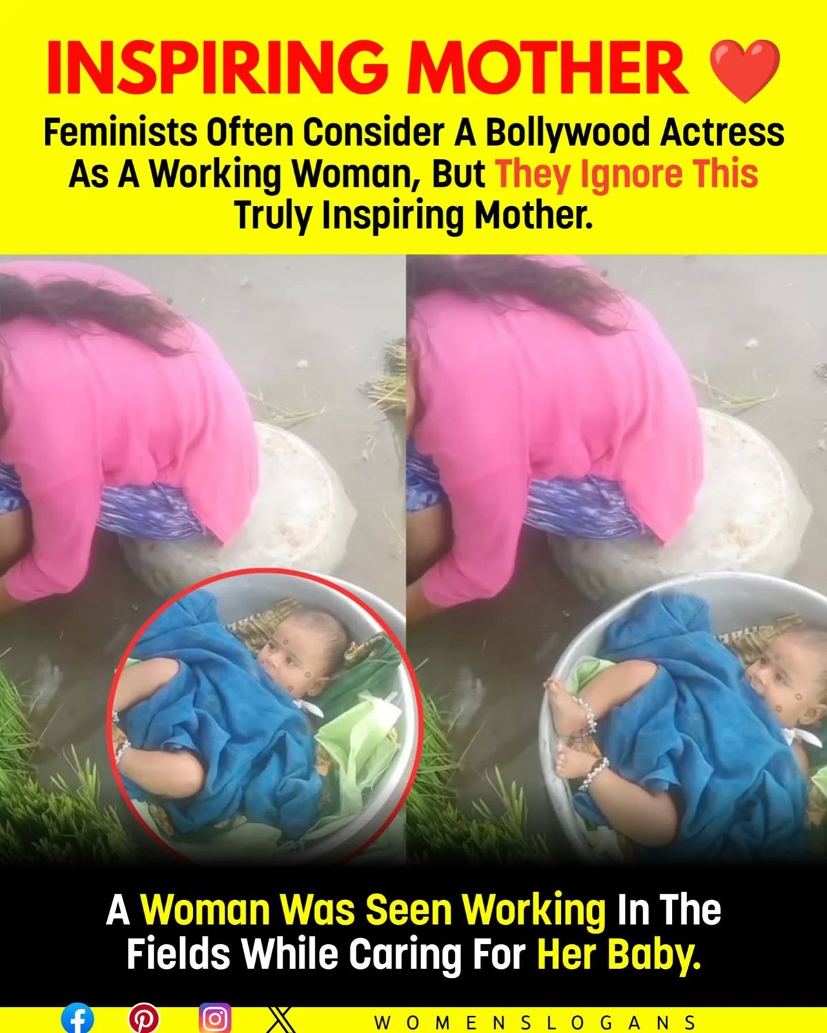 In this moving photograph, a young mother bends over to work in the rice fields while her tiny baby rests safely in a basket beside her. With no daycare, no breaks, and no easy choices, she turns hard labor into an act of pure love and sacrifice. ๐ฟ๐ฉโ๐ง