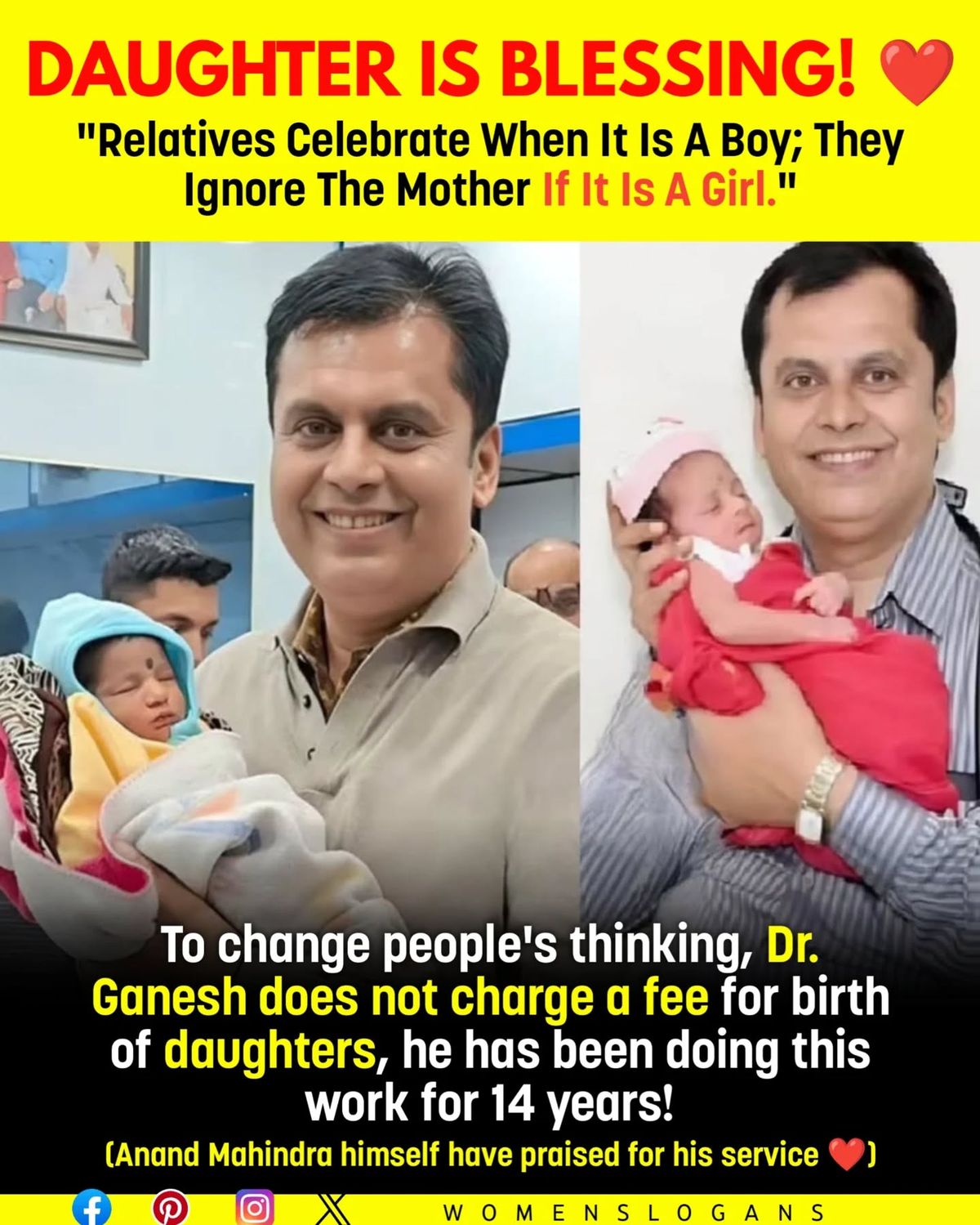 In a world where some still celebrate the birth of boys more than girls, Dr. Ganesh has spent the last 14 years challenging that mindset with quiet, powerful action. His policy is simple yet revolutionary: No fee for the delivery of baby girls.