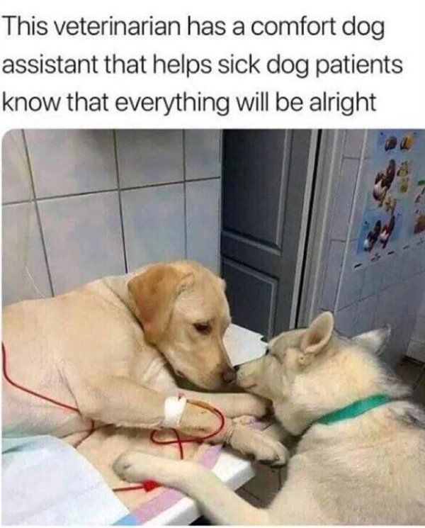 In this touching photo, a comfort dog gently rests beside a sick patient, offering silent reassurance that everything will be alright. The soft nuzzle of noses, the warmth of fur, and the steady presence of a friend speak louder than words ever could. 🌸✨