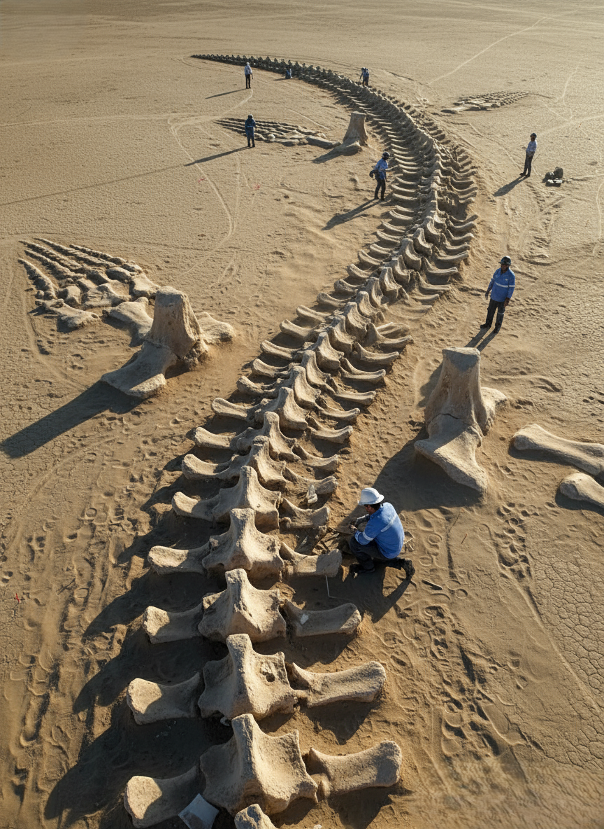 Giant Sea Creature Skeleton Unearthed in Desert Stirs Global Debate