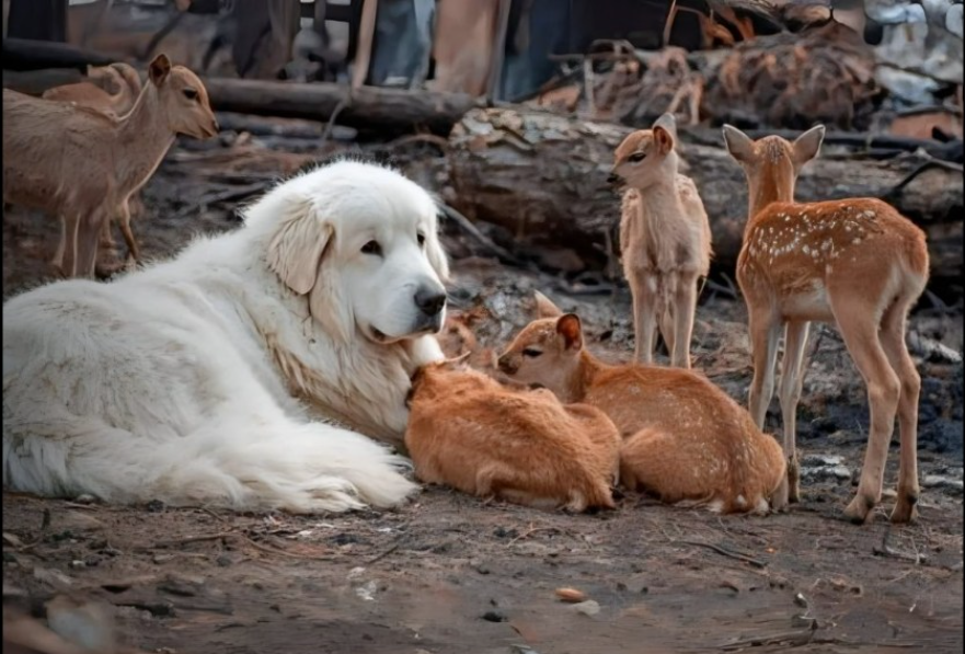 But the miracle didn’t end there. Alongside the goats, the family noticed a few baby deer nestled near Odin, having found refuge beside him during the fire. In the midst of chaos, Odin had not only protected his own herd but had welcomed other vulnerable creatures who needed shelter. His strength and calm presence had created a small island of safety in a sea of destruction. It was as though every animal in the area sensed that Odin would not let harm come to them — and they were right.