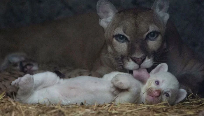 In the heart of Nicaragua, something truly extraordinary happened — a rare albino puma cub was born at the Thomas Belt Zoo, becoming the first of its kind ever recorded in the country. With bright white fur, a soft pink nose, and pale features, the newborn cub looks like a creature from a fairy tale. Unlike its tan-colored siblings, this cub carries a unique genetic condition called albinism, which results in a lack of pigment in the skin, hair, and eyes. The birth has captured hearts around the world and brought attention to the beauty and fragility of rare wildlife.