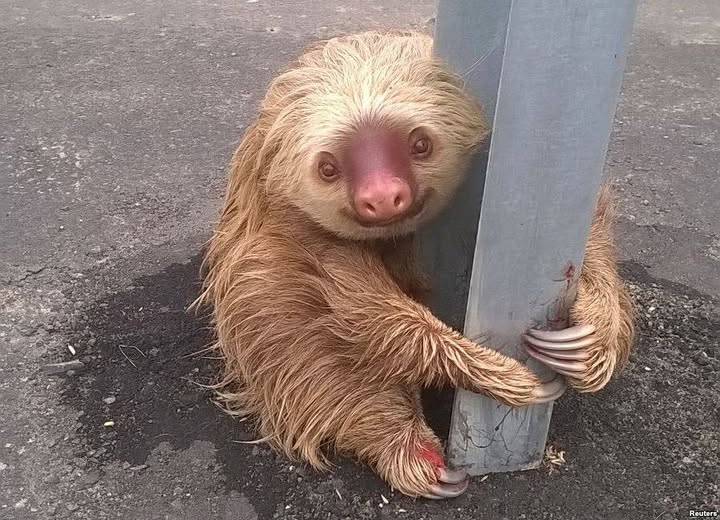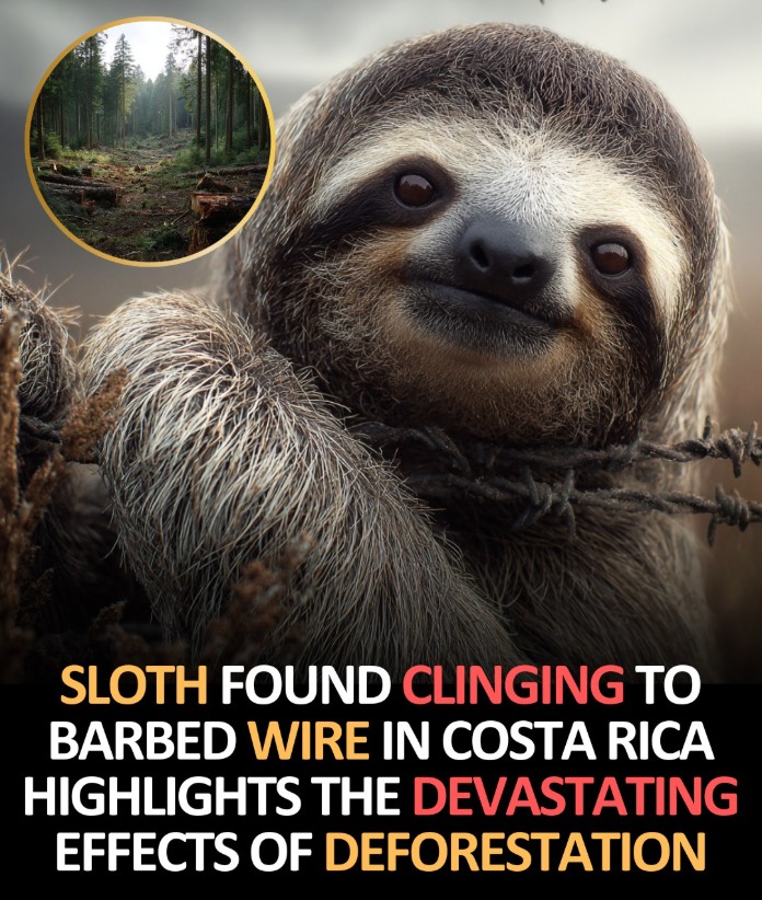 In the lush landscapes of Costa Rica, sloths are gentle creatures known for their slow, peaceful way of life in the treetops. But one recent sight broke hearts around the world — a sloth, confused and vulnerable, was seen hugging a barbed wire fence, mistaking it for a tree. It had just crossed a dangerous road, instinctively reaching for anything that felt familiar. This quiet moment revealed a louder truth: when forests are divided by roads, fences, and buildings, animals like sloths are left with fewer and more dangerous options for survival.