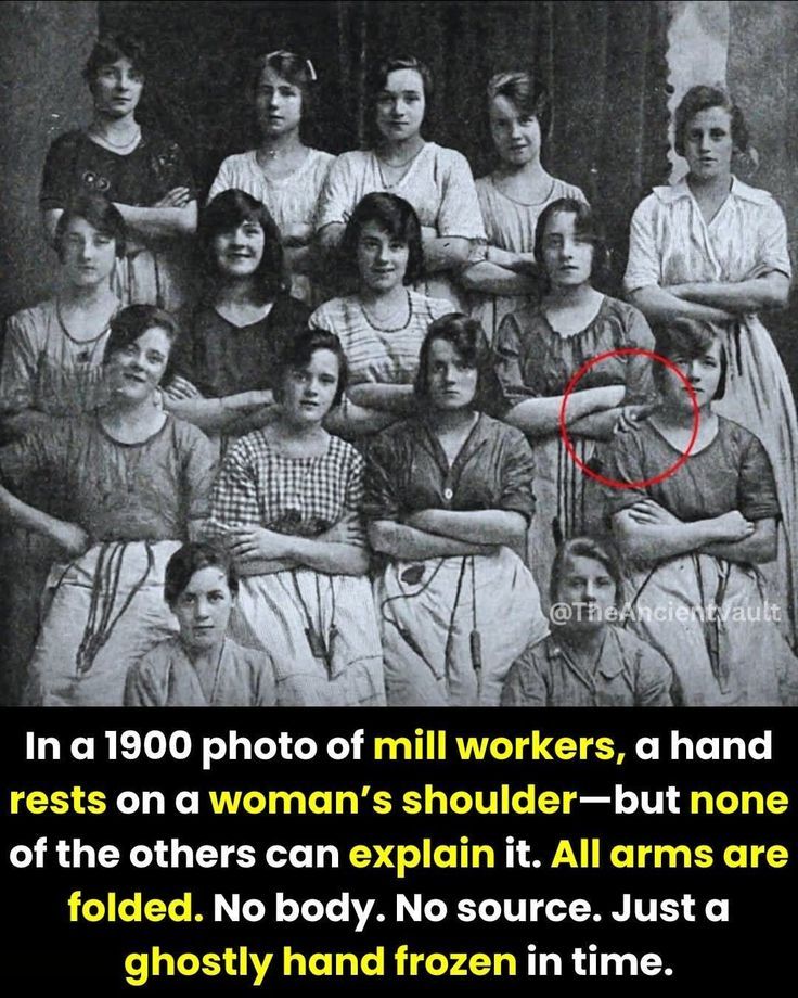 Every woman in the photo has her arms neatly folded, yet a single mysterious hand appears from nowhere. No body. No shadow. No explanation. Despite careful examination, no natural reason has ever been confirmed.