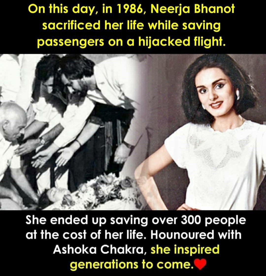 #NeerjaBhanot 💛 #AshokaChakra 🏅 #CourageBeyondFear ✈️