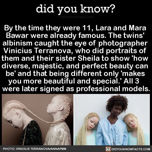 From the vibrant streets of Brazil to the worldβs fashion capitals, Lara and Mara Bawar are proving that difference is pure brilliance. Born with albinism, a rare genetic condition that gives their skin and hair a luminous glow, the twins caught the attention of visionary photographer Vinicius Terranova when they were just 11 years old.