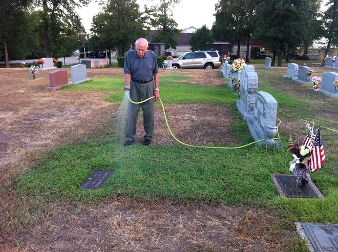 One morning, as Jake was tending to his usual spot, he noticed a woman sobbing beside a nearby grave. She was grieving for Joseph Villasenor, an Air Force veteran and her beloved son. Jake recognized that kind of pain—deep, quiet, and heavy with memories. Without needing to ask questions or offer words, Jake responded in the only way he knew how: with action. From that day on, he began to water the grass around Joseph’s grave too. He didn’t ask for permission. He didn’t expect thanks. He simply saw another soul who deserved to be remembered, and he honored him as he did his own wife.