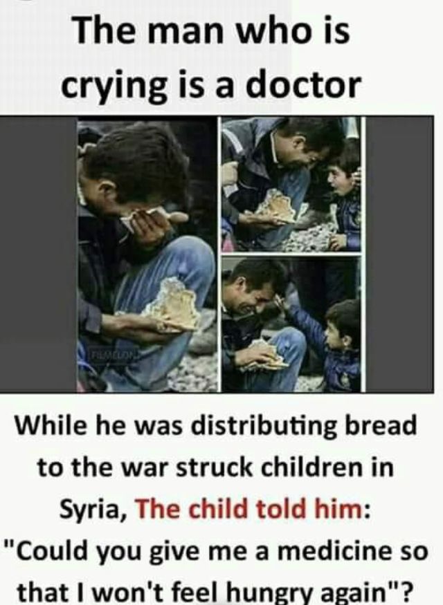 Those innocent words carried the weight of a war no child should ever know. Overcome with grief and helplessness, the doctor broke down in tears, bread still in his hands, heart heavy with the realization that medicine could not cure the wounds of famine and conflict. 🌙💔