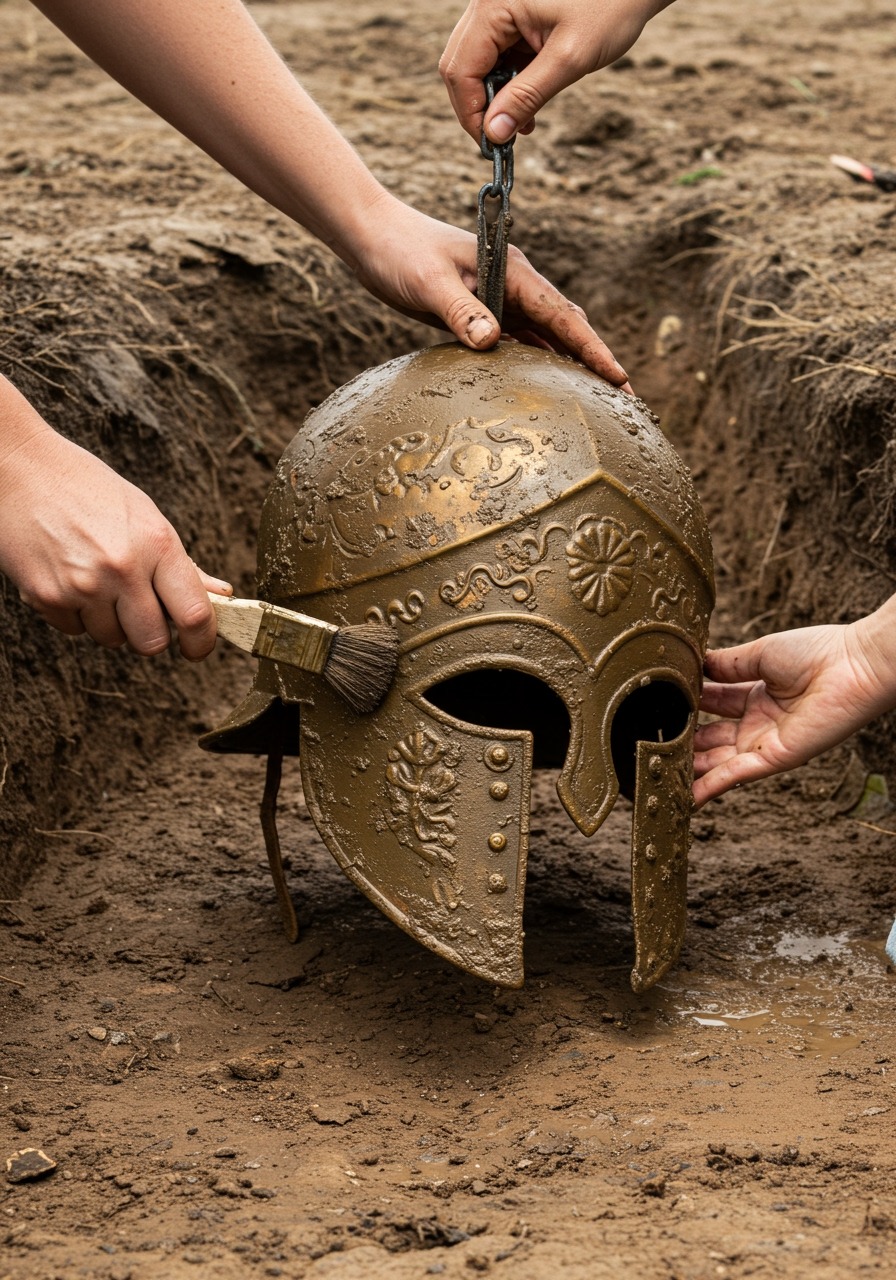 Discovery of Ornate Warrior Helmet Sparks Global Fascination and Debate