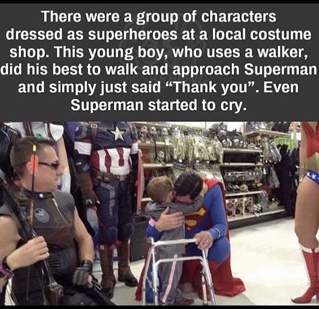 With incredible determination, the boy carefully made his way across the store, each step a quiet victory. Finally reaching Superman, he looked up and simply said: “Thank you.” No long speeches, no dramatic gestures—just two powerful words filled with gratitude and meaning. In that instant, the man behind the Superman suit realized he was witnessing true bravery. Overcome with emotion, Superman began to cry, recognizing that this little boy’s courage was far greater than any fictional power. 🕊️💧