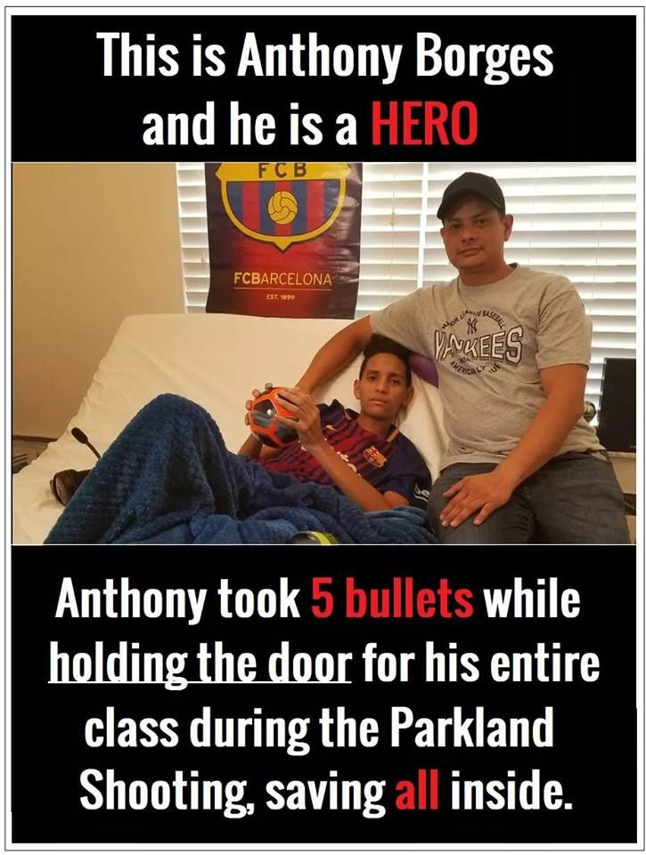 In the face of unthinkable tragedy, true heroes are revealedโnot by their strength alone, but by their selflessness. This is Anthony Borges, a young student whose bravery during the Parkland school shooting saved countless lives. When chaos and terror swept through the hallways, Anthony chose not to run for safety. Instead, he held the door shut to protect his classmates, turning himself into a living shield. In doing so, he was struck by five bullets. ๐๐ซ His body bore the pain, but his act of courage spared the lives of those trapped inside.