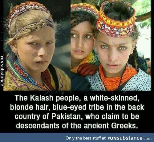 Hidden deep within the rugged valleys of northern Pakistan lives the Kalash people, a small but extraordinary community unlike any other in the region. With fair skin, blonde hair, and striking blue or green eyes, their distinct appearance sets them apart. Their traditions, vibrant festivals, and polytheistic beliefs make them a living cultural treasure, a stark contrast to the surrounding societies. What makes their story even more fascinating is their claim of descent from the soldiers of Alexander the Great, who marched through these lands more than two millennia ago. πΉβοΈ