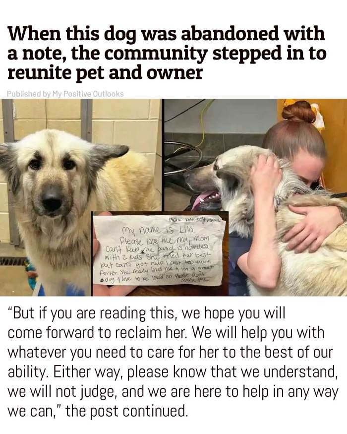 This heartwarming story reminds us that kindness can bridge even the deepest struggles. When a beautiful dog named Lilo was found abandoned with a handwritten note explaining that her owner was homeless and unable to provide proper care, the community refused to let despair win. Instead of judgment, they chose compassion, stepping in to reunite Lilo with the person who loved her most. 🌟🐕
