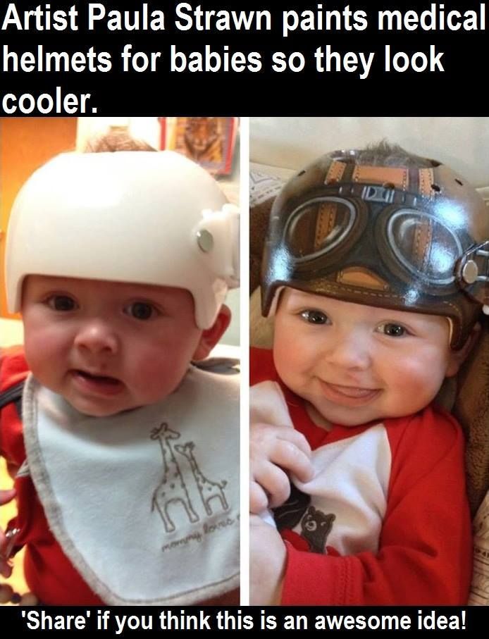 Keywords for SEO: Paula Strawn baby helmets, painted medical helmets, baby helmet art, heartwarming creativity, child medical journey, inspiring artist story, unique baby helmet designs.
