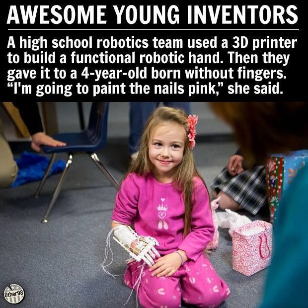 Keywords for SEO: 3D printed prosthetic hand, young inventors, high school robotics team, child with robotic hand, heartwarming innovation, accessible technology, inspiring invention story.