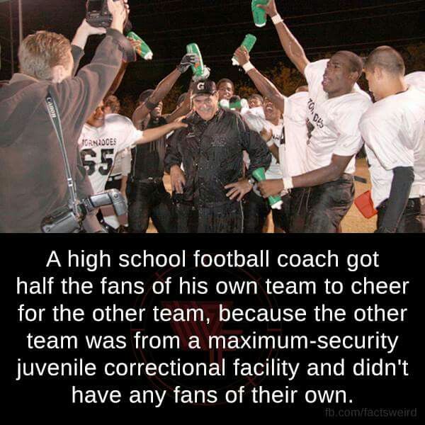 This moving photograph captures the power of kindness and humanity in one of the most unexpected placesโ€”a high school football field. In this story, a high school coach made a decision that went far beyond the game itself. Knowing that the opposing team came from a maximum-security juvenile correctional facility and had no parents, friends, or community members to cheer for them, he asked half of his own fans to switch sides and cheer for the boys who had no one.