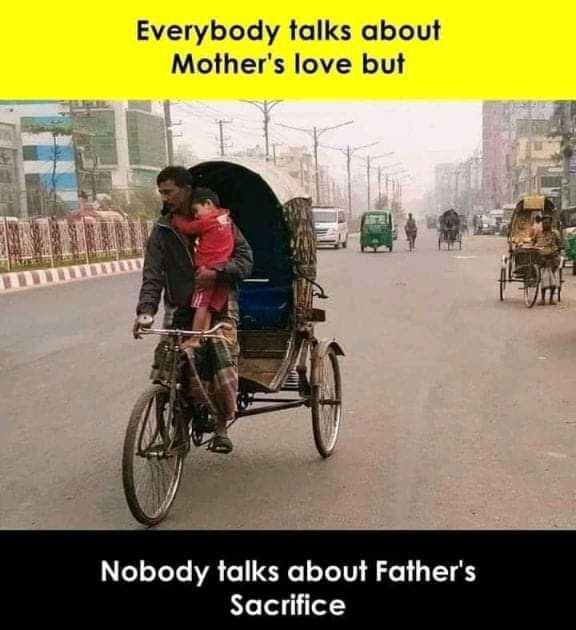 A father’s love may not always be expressed in words, but it is written in his sweat, in his sleepless nights, in the strength of his hands, and in the sacrifices he makes without expecting recognition. He may not always say “I love you,” but every mile he pedals, every tear he hides, and every dream he gives up silently whispers it. 🌟