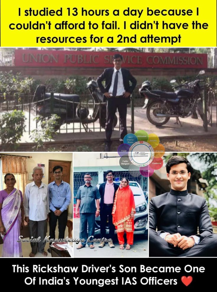 This inspiring story shows the incredible power of hard work, resilience, and unshakable belief in oneself. The young man in this image, the son of a humble rickshaw driver, rose from the depths of financial struggle to become one of India’s youngest IAS officers—a journey that speaks louder than words. ❤️🇮🇳