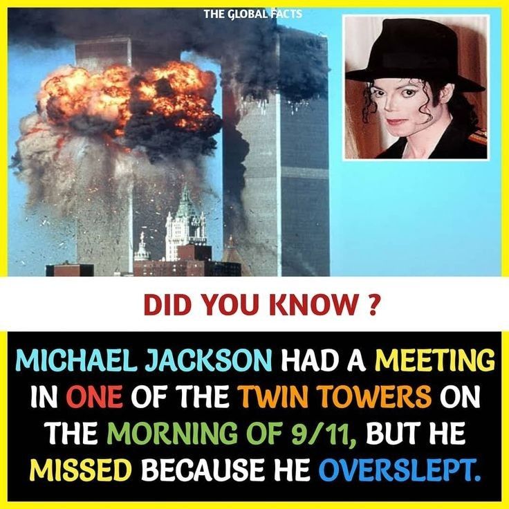 On September 11, 2001, the world stood still as the Twin Towers fell in one of the darkest moments of history. The image above is a haunting reminder of that day—the smoke, the flames, the heartbreak, and the countless innocent lives lost. Yet hidden among the tragedies are extraordinary stories of survival, moments when fate intervened in the most unexpected ways. One such story involves the King of Pop, Michael Jackson. According to reports, Jackson had an important meeting scheduled in one of the Twin Towers that very morning. The time was set, the location was fixed, and the world could have lost one of its most iconic voices that day. But destiny took a different turn—Michael Jackson overslept after spending the previous night rehearsing, and in that simple twist of fate, his life was spared. 🌍💔✨