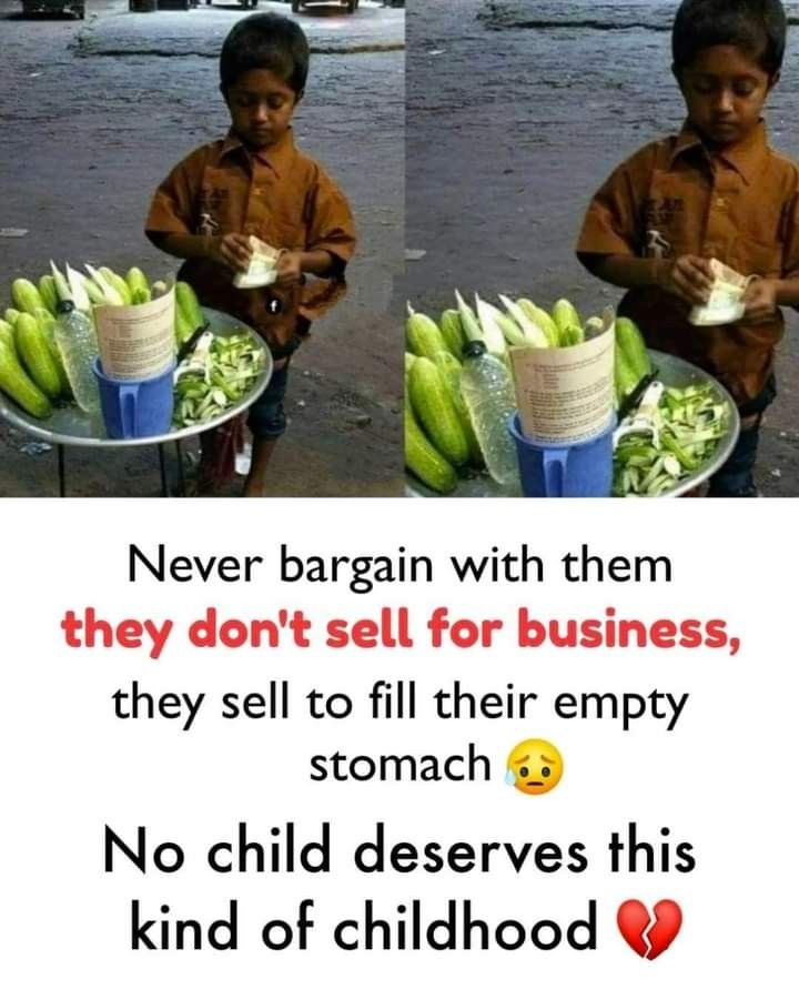 This picture is not just a glimpse of poverty—it is a call for compassion. When we see children like him, we must remember: bargaining over a few coins may save us almost nothing, but it could mean everything to them. That small amount might be their dinner, their only meal of the day, or the medicine their family desperately needs. Every purchase is more than a transaction—it is an act of humanity. 🌸🤲