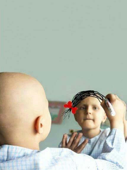 This deeply moving image shows a young child, bald from illness and treatment, standing before a mirror. With a marker in hand, she draws hair and a red bow on her reflectionβ€”a simple yet powerful act of hope, imagination, and resilience. πŸ•ŠοΈπŸ’–