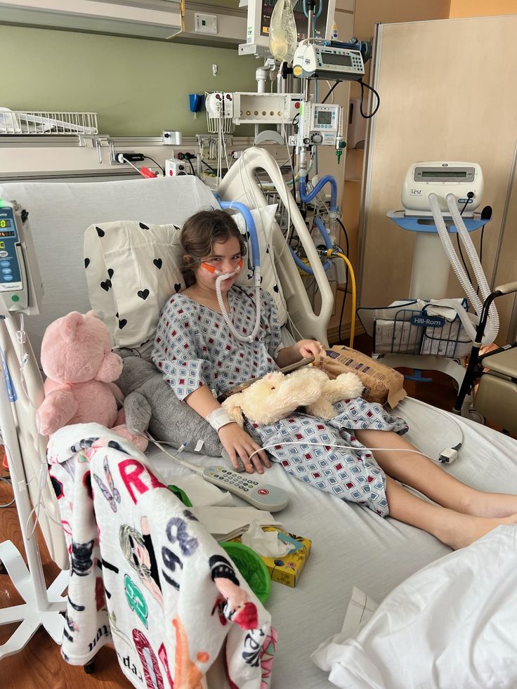 This touching photograph captures a young girl lying in a hospital bed, surrounded by machines and tubes that keep her fighting. Despite the wires, despite the oxygen mask, what shines brightest is her spirit. In her arms, she clutches soft stuffed animalsโsymbols of comfort and innocence that remind us she is still just a child longing for warmth, love, and normalcy. ๐งธโจ