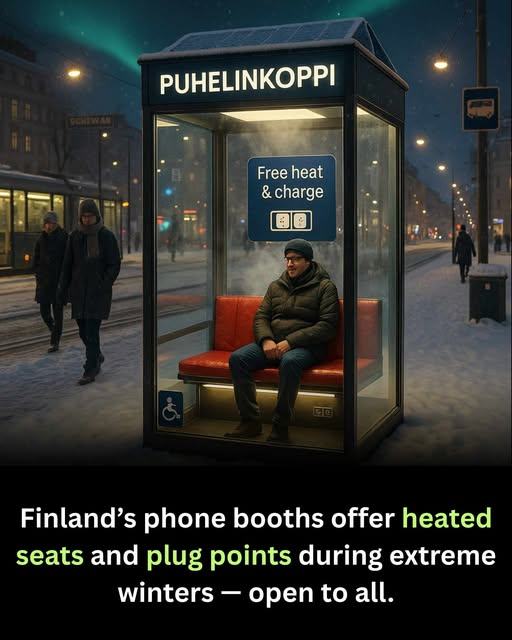 In the frosty winters of Finland, where icy winds and heavy snow are part of daily life, a heartwarming initiative is transforming how people experience the cold. Across cities and towns, old phone booths — once forgotten relics of a pre-digital era — have been creatively repurposed into heated micro-shelters. These compact sanctuaries provide warmth and protection to anyone in need, whether it’s a delivery worker on a break, an elderly person waiting for a bus, or someone experiencing homelessness. In a country known for its extreme winters, this idea is not just smart — it’s a beautiful act of social kindness.