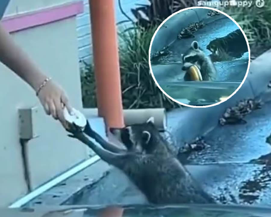 Every night, after the noise of the day faded and the drive-thru lights dimmed, a kind-hearted fast-food employee would begin a quiet, personal mission. Instead of throwing away leftover food, he gently set some aside for a family of raccoons — a mother and her two babies — who appeared without fail at closing time. The animals waited patiently, never aggressive, as he handed them scraps through the window. What began as a small act of kindness became a silent tradition, one that warmed the hearts of those who happened to witness it. Customers smiled, staff didn’t mind — it was a moment of unexpected connection between humans and animals.