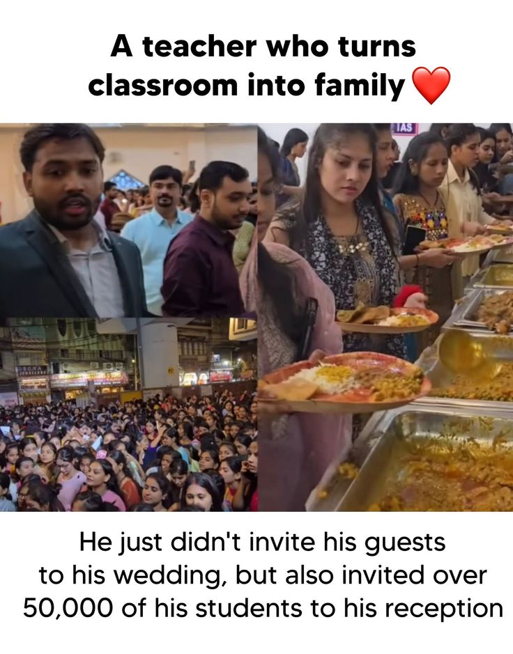 This heart-touching story captures the true essence of what it means to be a teacher—a mentor, a guide, and above all, a family to countless students. At his wedding, this remarkable teacher didn’t just invite his relatives or close friends; he opened his heart and doors to over 50,000 of his students, turning a personal celebration into a shared moment of joy for an entire community. 🌸✨