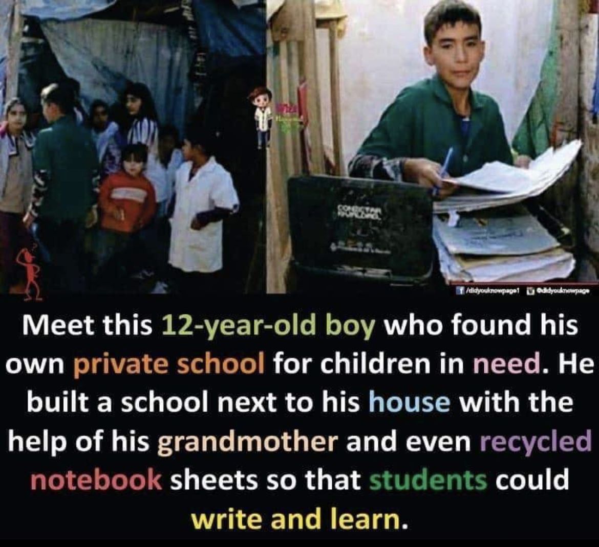 In a world where many children struggle to access education, this 12-year-old boy stands as a beacon of hope. Instead of spending his days like any ordinary child, he chose to create a private school for children in need, right next to his humble home. π‘β¨