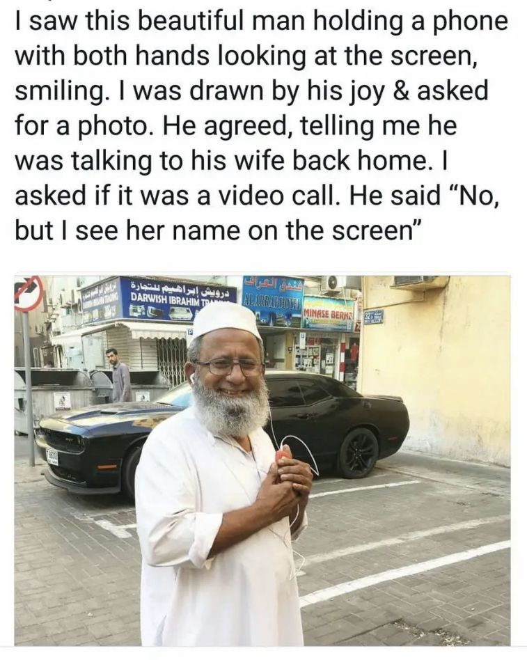 This simple yet profoundly moving moment reminds us that true love is not bound by distance, technology, or even spoken words. The man in this picture was spotted smiling warmly at his phone, holding it tenderly with both hands, as though it carried something priceless. When asked if he was on a video call, he replied with a heartfelt truth: “No, but I see her name on the screen.” ❤️📱