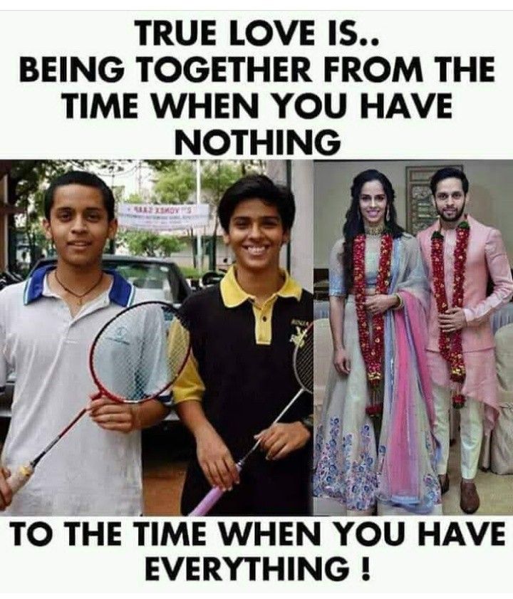 This beautiful collage tells a timeless story about love, patience, and shared dreams. On the left, we see two young badminton players in their early years—smiling, full of passion, yet with nothing more than hope, ambition, and each other. Their love wasn’t built on fame, wealth, or glamour; it was rooted in friendship, mutual support, and the simple joy of chasing dreams side by side. 🌱💞