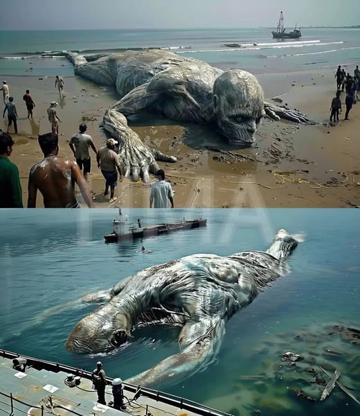 As the tide began to rise, engulfing parts of the giant’s form, a chilling realization settled over the crowd—this discovery would change their lives forever. The ocean, with its vast and inscrutable depths, had revealed a fragment of its secrets, yet left behind more questions than answers. The legend of the fallen giant would echo through generations, a testament to the mysteries that dwell beneath the waves, urging humanity to ponder the untold stories waiting to be uncovered in the depths of the sea.