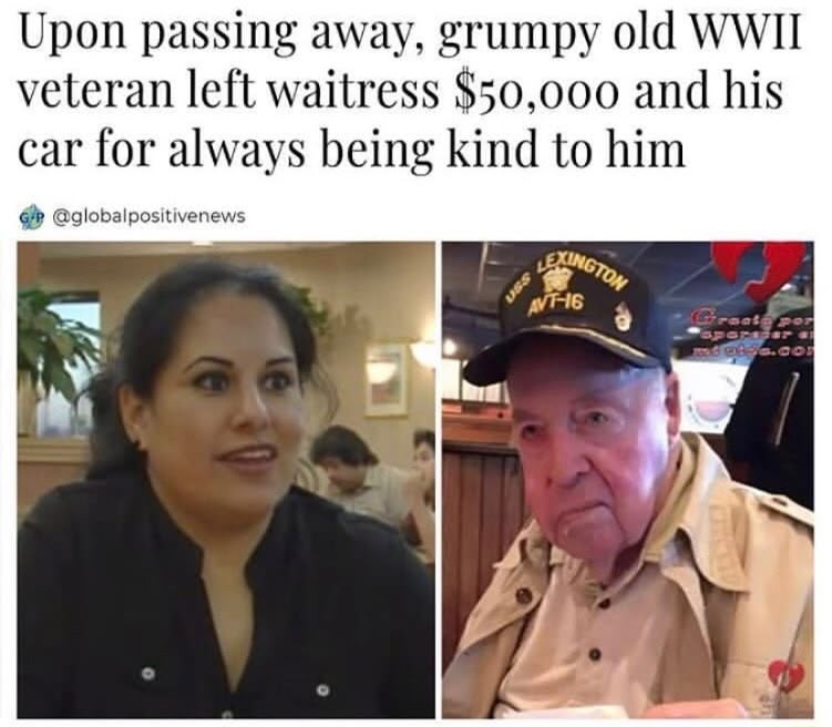 In a world where kindness is often overlooked, one simple act of compassion changed two lives forever. A waitress, known for treating everyone with warmth and respect, showed consistent kindness to a grumpy old WWII veteran who visited her diner. To many, he might have seemed difficult, but to her, he was simply another soul deserving of care and dignity. 🌟