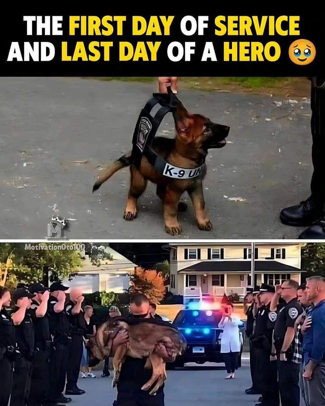 This is more than just a farewell โ itโs a tribute to pure devotion. A K-9โs life is short, but its impact is eternal. Through every chase, every search, every moment of danger, these four-legged officers give everything they have โ not for fame or reward, but for love and duty. ๐ถ๐ When they fall, they leave behind not just a legacy of bravery but a void in the hearts of those who walked beside them. That final salute isnโt just for a dog โ itโs for a partner, a protector, and a friend. ๐๐๏ธ