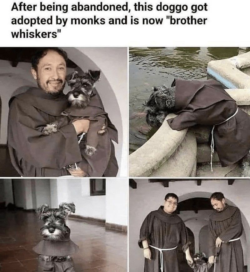 In a quiet monastery nestled far from the noise of the world, a small dog once lost and forgotten found something far greater than a home β he found love, peace, and purpose. π This little pup, abandoned and alone, wandered into the hearts of kind monks who saw not a stray, but a soul in need of care. They wrapped him in a tiny brown robe like their own, giving him a new name that spoke of warmth and belonging β Brother Whiskers. πΆβ¨