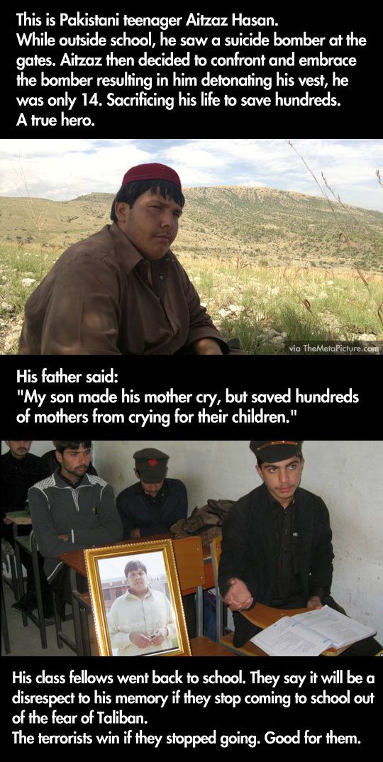 In a world where many adults turn away from danger, a 14-year-old boy from Pakistan named Aitzaz Hasan chose courage over fear, sacrifice over safety, and humanity over his own life. π While standing outside his school one morning, Aitzaz noticed a stranger approaching β a man wearing a suicide vest. Realizing what was about to happen, he didnβt run. He didnβt hide. Instead, he made a choice that would define him forever β he confronted the bomber, stopping him before he could enter the school filled with hundreds of innocent students. In that brave act, Aitzaz lost his life β but saved countless others. πΏπ«