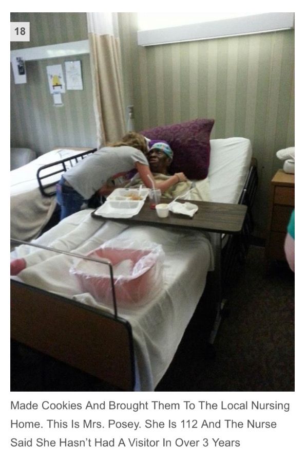 Sometimes, the smallest gestures carry the greatest light. In this touching photograph, a young child leans in to hug Mrs. Posey, a 112-year-old woman living in a nursing home. The nurse shared that Mrs. Posey hadnโt had a single visitor in over three years โ until that day, when this little one arrived with freshly baked cookies and an open heart. ๐ช๐