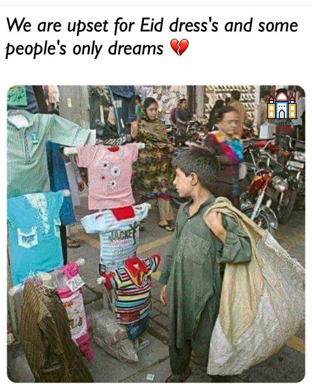This image is a mirror for humanity — a reminder that while we complain about not having the “perfect” Eid outfit, millions of children would give anything just to have a meal, a home, or one day without worry. 🌙✨ True celebration isn’t in what we wear, but in how we care. The real spirit of Eid lies in sharing — in turning our abundance into someone else’s smile, in making sure no child has to press their face against the glass of happiness they can’t afford to enter.