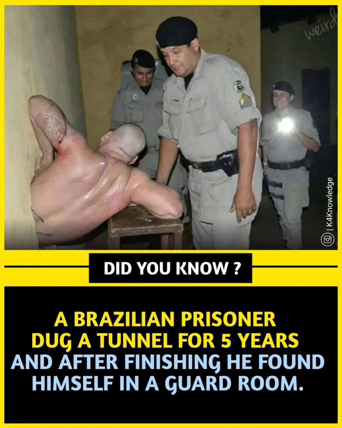 Sometimes truth really is stranger than fiction. This bizarre yet fascinating story from Brazil tells of a prisoner who spent five long years meticulously digging a tunnel beneath his cell, convinced that he was slowly working his way toward freedom. Day after day, inch by inch, he carved through dirt and rock, fueled by dreams of escape and a life beyond the prison walls. But when he finally broke through to what he thought was liberty… he found himself inside a guard room. 🚨😂