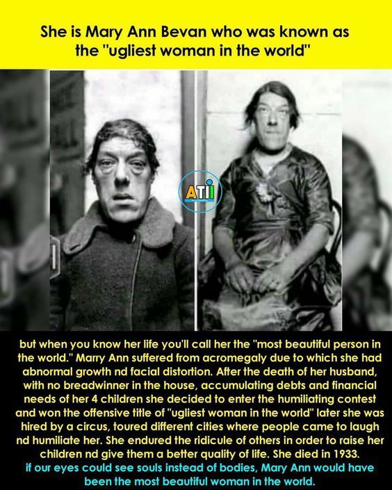 She passed away in 1933, but her story remains a timeless lesson: true beauty has nothing to do with faces, and everything to do with hearts. If kindness, courage, and sacrifice were visible, Mary Ann Bevan would be remembered not as the ugliest, but as the most beautiful woman in the world. 🌿✨
