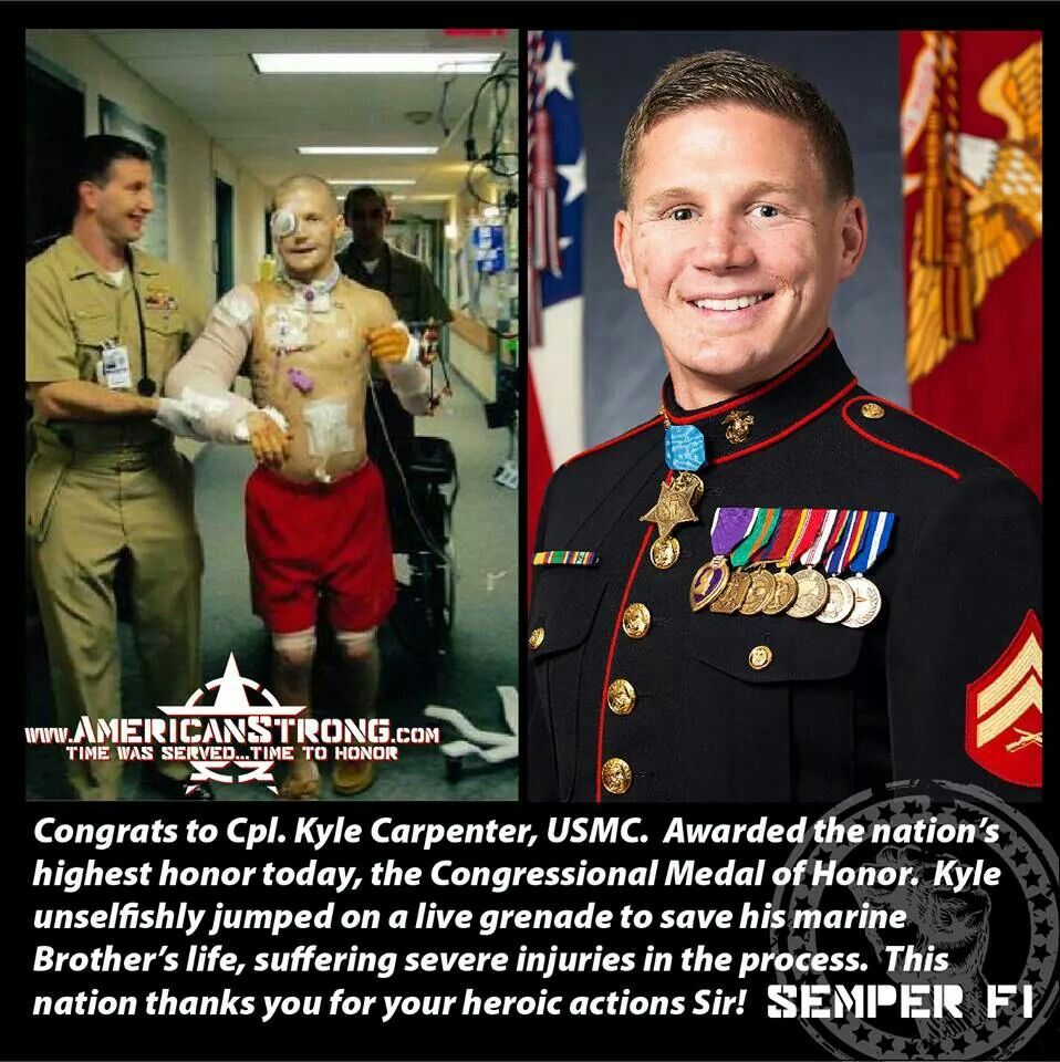 This image tells the unbelievable true story of Cpl. Kyle Carpenter, a United States Marine who redefined what courage truly means. On a battlefield in Afghanistan, when a live grenade landed near him and a fellow Marine, Kyle didnβt hesitate β he threw himself onto the grenade, taking the full blast to shield his comrade from certain death. π₯ In that instant, his life changed forever. His body was shattered, his face torn apart, and his survival seemed impossible. Yet, against all odds, he lived. π On the left, we see him in the hospital β wrapped in bandages, fighting through pain with a smile that defies tragedy. On the right, we see him years later, wearing the Congressional Medal of Honor, the nationβs highest award for bravery. ποΈ His story is not just about war, but about the unbreakable human spirit β a living reminder that sacrifice, love, and loyalty can triumph over even the darkest moments. Kyleβs scars tell a story of selflessness, of a man who gave everything so another could live. His strength inspires millions to see that true heroism isnβt found in words, but in the willingness to act when it matters most. π«π We salute you, Cpl. Kyle Carpenter β your courage lights the way for all of us. πΊπΈβ€οΈ