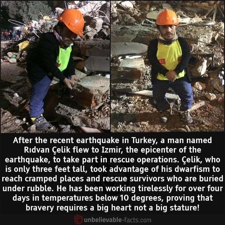 When tragedy struck Turkey with a devastating earthquake, countless lives were trapped under rubble and despair. Amidst the chaos, one man—Ridvan Çelik—rose to embody the very definition of bravery. Standing only three feet tall, he used what many see as a limitation to do something extraordinary: he crawled into the tightest, most dangerous spaces to save lives that others could not reach. 🧡
