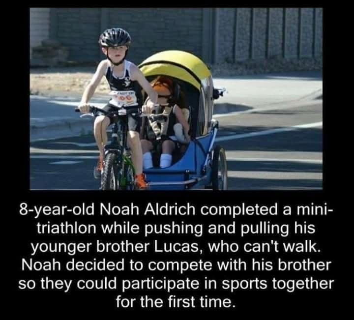 When 8-year-old Noah Aldrich decided to compete in a mini-triathlon, he wasn’t thinking about medals or records — he was thinking about his younger brother, Lucas, who can’t walk. Noah wanted Lucas to feel the thrill of racing, the joy of movement, and the pride of crossing the finish line — together. ❤️