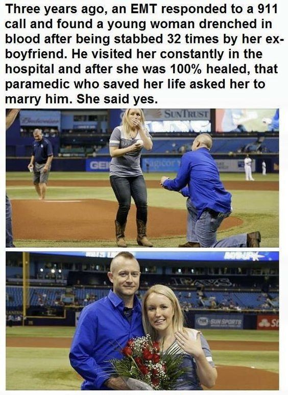 Then, in a moment that seemed straight out of a miracle, the paramedic who once fought to keep her alive got down on one knee and asked her to be his wife. Through tears of joy, she said yes. ๐โจ