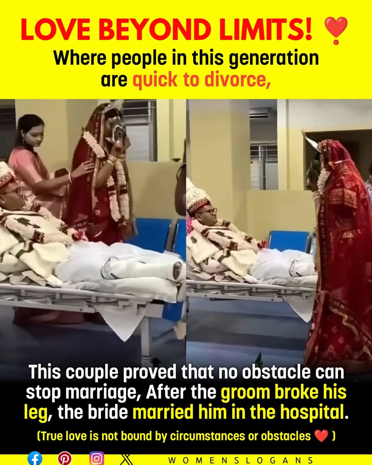 In a time when love often falters under life’s pressures, this couple from India reminded the world what true commitment really means. Just days before their wedding, the groom suffered a severe accident that left him with a broken leg and confined to a hospital bed. Most couples might have postponed the ceremony—but not them. The bride made a powerful choice: she would marry him right there in the hospital. 🕊️