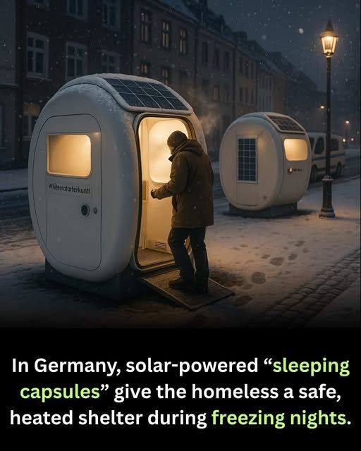 In Germany, technology is being used not for luxury or convenience, but as a tool for compassion and care. Across parks and city corners, solar-powered sleeping capsules have been introduced as innovative shelters to protect homeless individuals from freezing winter nights. These futuristic pods provide more than just physical warmth—they offer dignity, safety, and hope to those who often go unseen in society. This thoughtful use of technology reflects a deep respect for human life and a commitment to addressing homelessness with kindness.