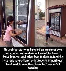In a quiet neighborhood in Saudi Arabia, compassion found a new form — not in grand speeches or wealthy donations, but in the hum of a simple refrigerator placed on the street. Installed by a kind-hearted Saudi man, this humble fridge became a symbol of humanity. He filled it with leftover meals, fruits, and bread, inviting his neighbors and friends to do the same. What began as a small act of generosity soon transformed into a lifeline for the less fortunate children in his community. 🌙🥖